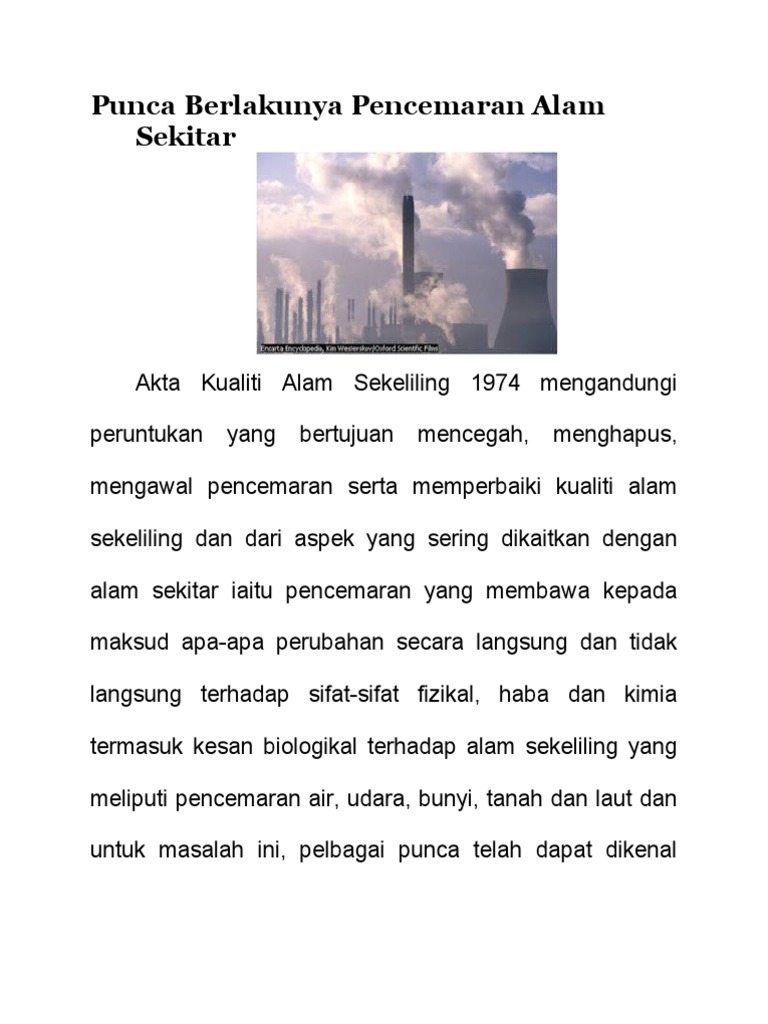 Karangan Fakta Punca Punca Berlakunya Pencemaran Alam Pdf